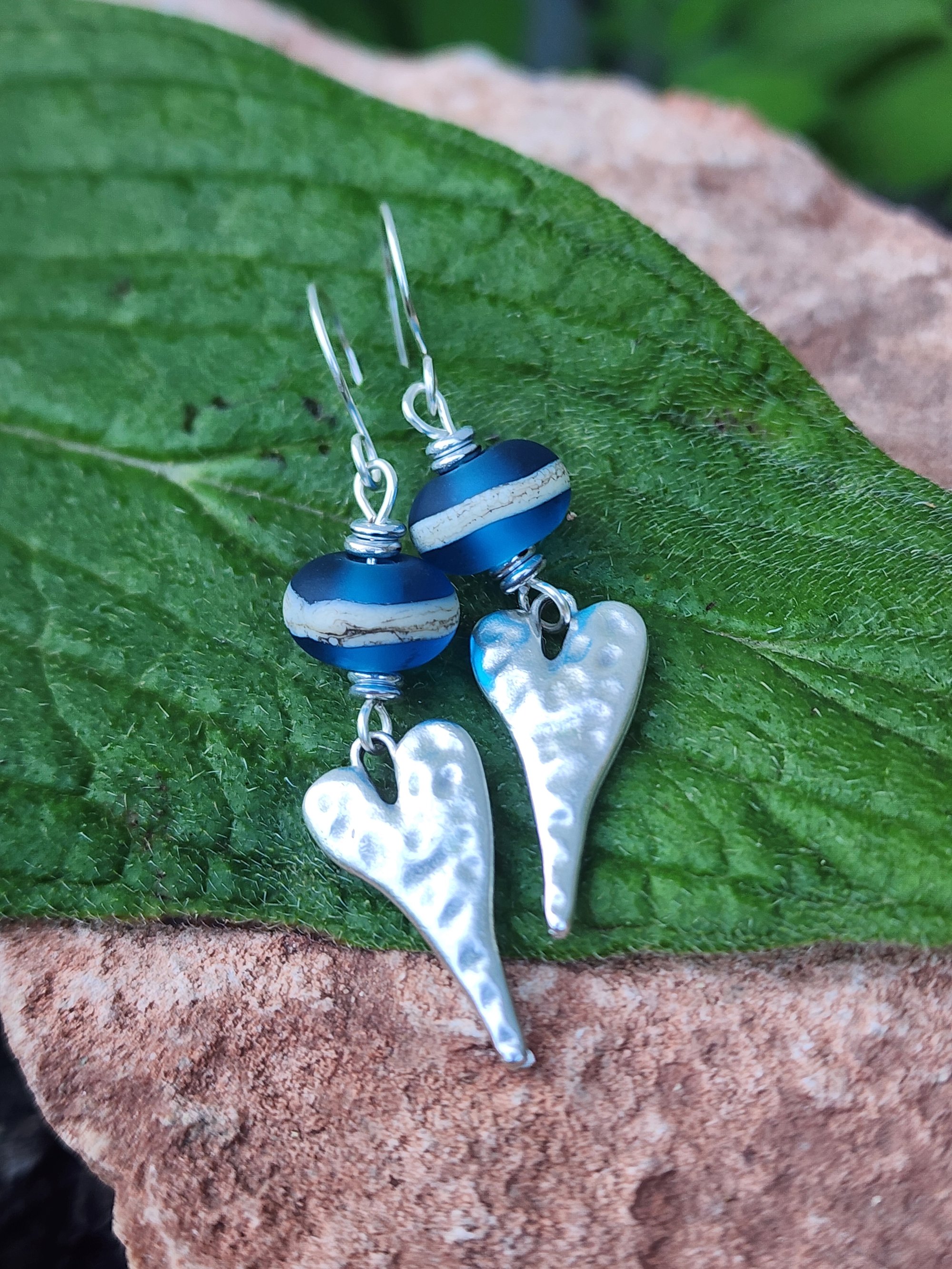 Unforgettable lampwork beads and hearts longing for love!! Custom-made earwires. These are approximately 2.25" in length